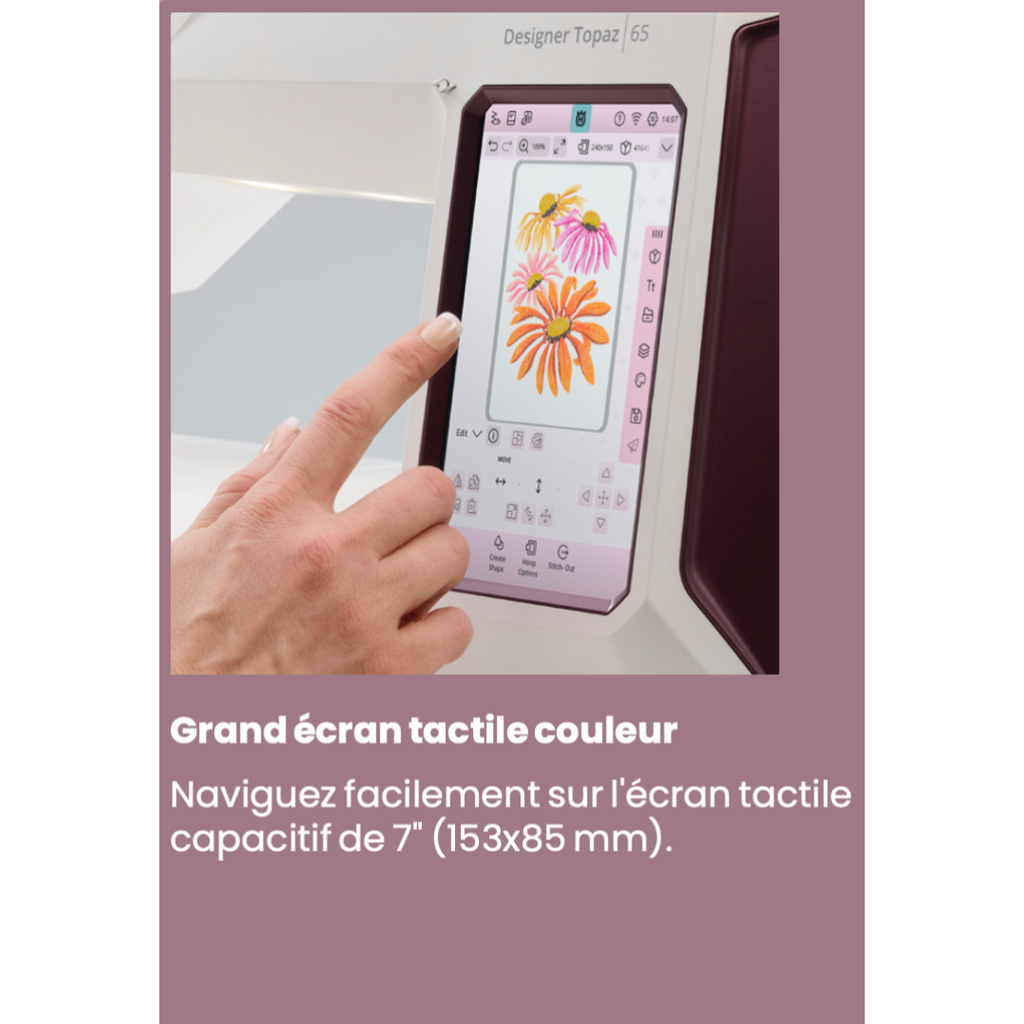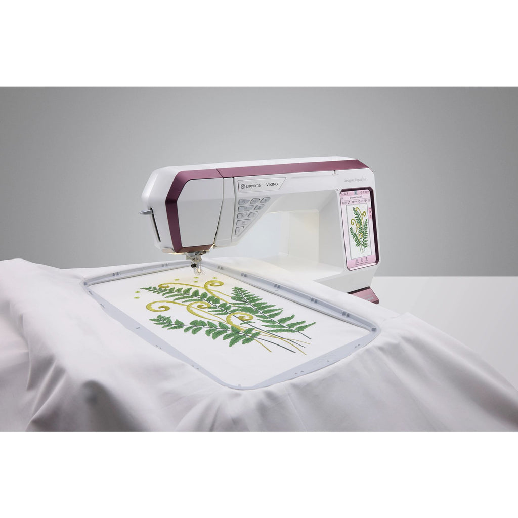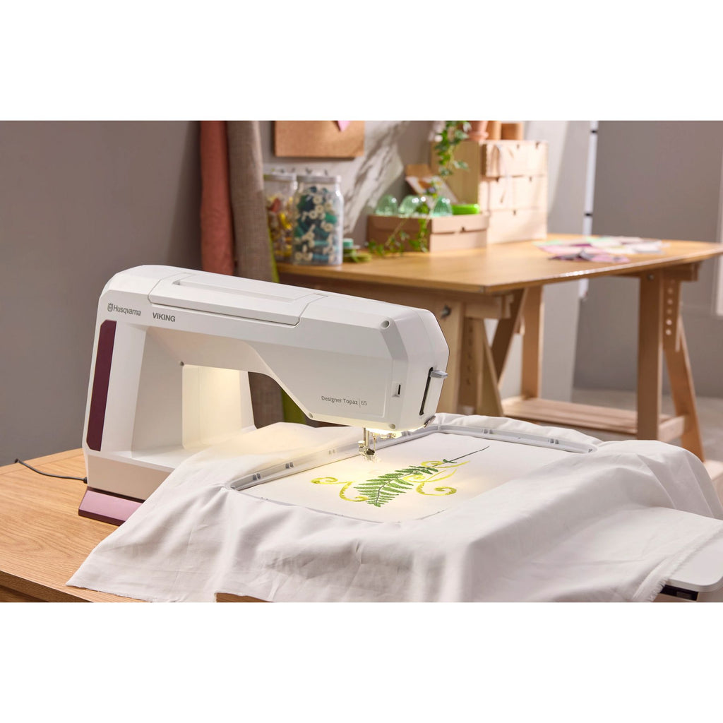 La HUSQVARNA® VIKING® DESIGNER TOPAZ 65, machine à coudre et à broder. Pour ceux qui veulent tout, ajoute de puissantes capacités de broderie et une grande surface de broderie.