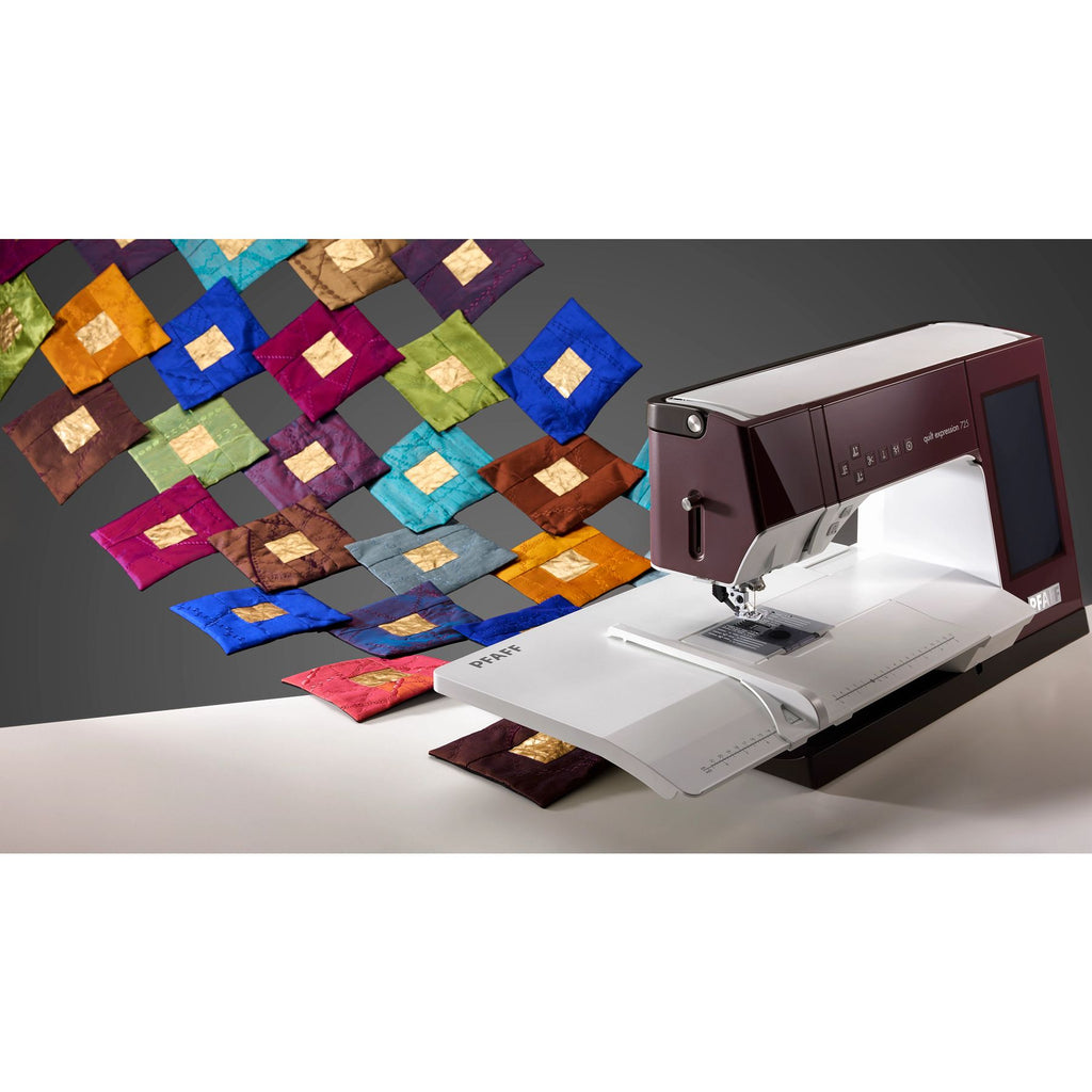 La machine à coudre PFAFF® Quilt Expression 725, conçue pour les passionnés de patchwork qui exigent précision, espace et contrôle.