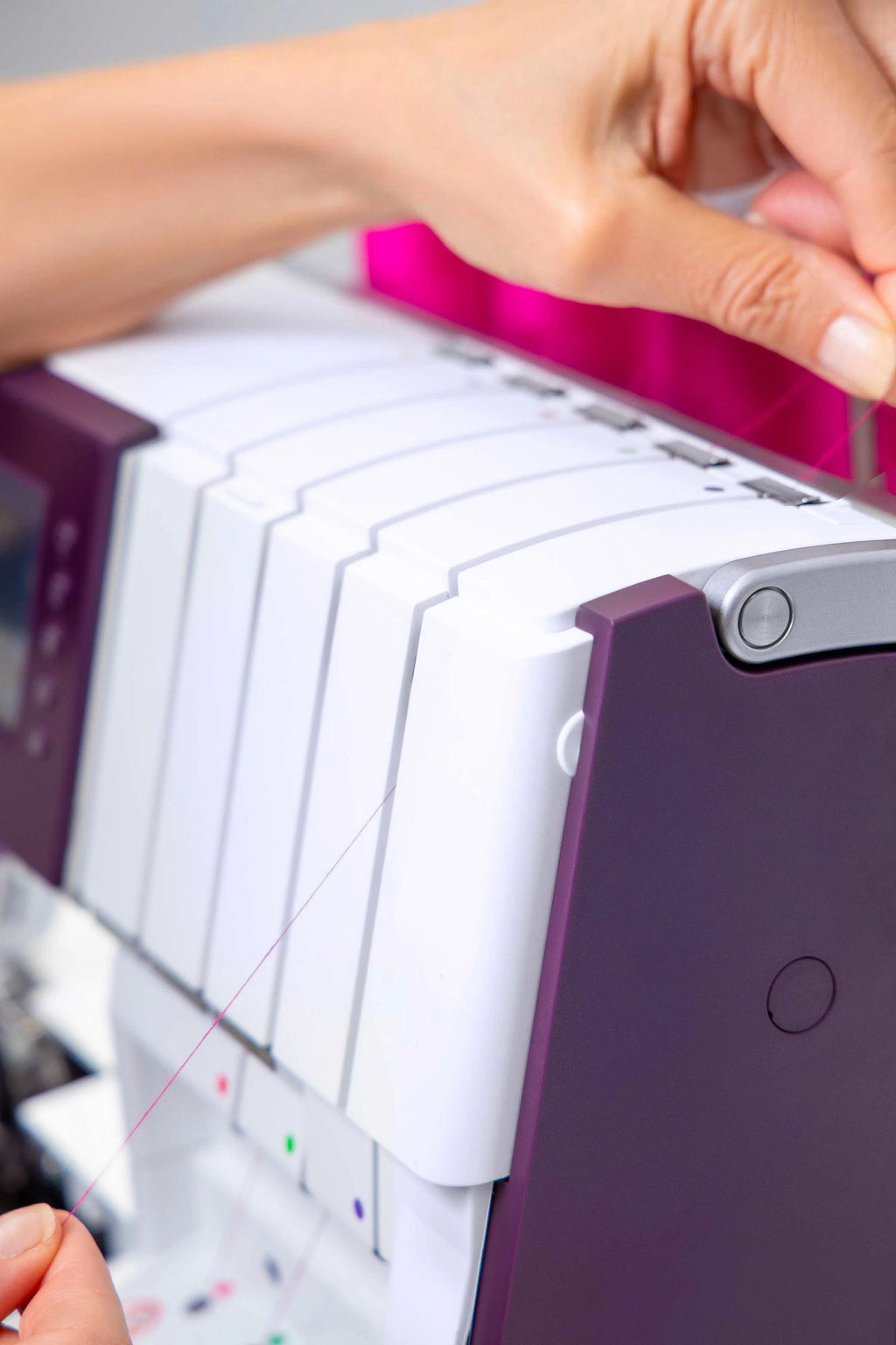 - Guides d’enfilage pour une grande variété de types de fil à coudre