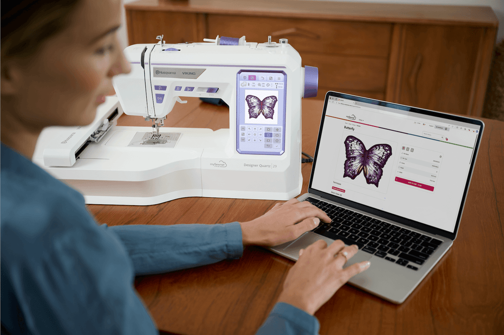 Soyez créatif grâce à une navigation transparente et basée sur le cloud entre l'écran de votre machine, votre ordinateur portable et vos appareils mobiles. Un essai gratuit de 30 jours de l'abonnement mySewnet™ est disponible pour les nouveaux abonnés.